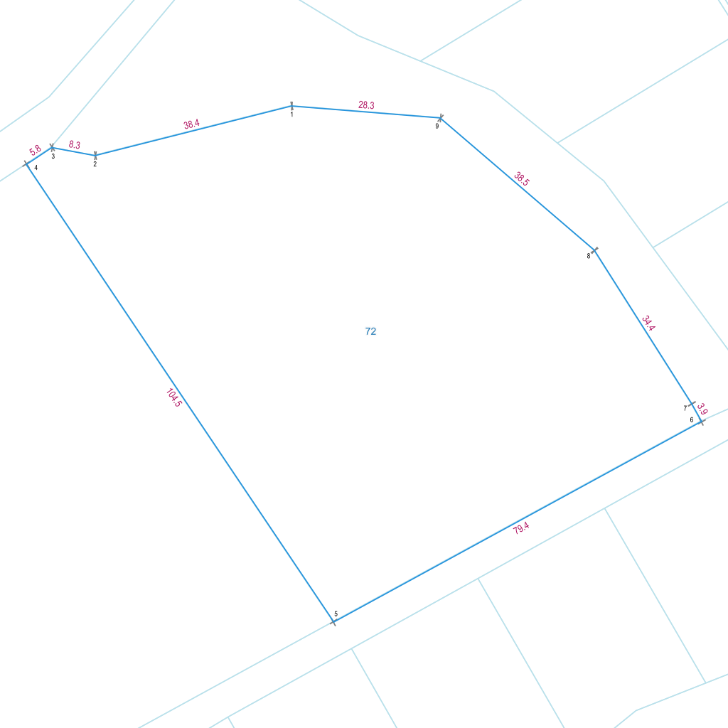 | Powierzchnia geometryczna i obwód | 7026 m2 (0.7026 ha), 341 m |