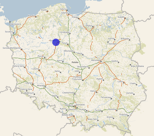 | Współrzędne i wysokość środka | X: 580986, Y: 415216, H: 64 m (PL-1992; PL-EVRF2007-NH) |