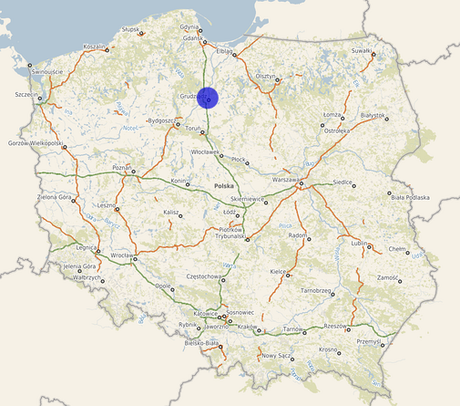 | Współrzędne i wysokość środka | X: 627705, Y: 482291, H: 19 m (PL-1992; PL-EVRF2007-NH) |