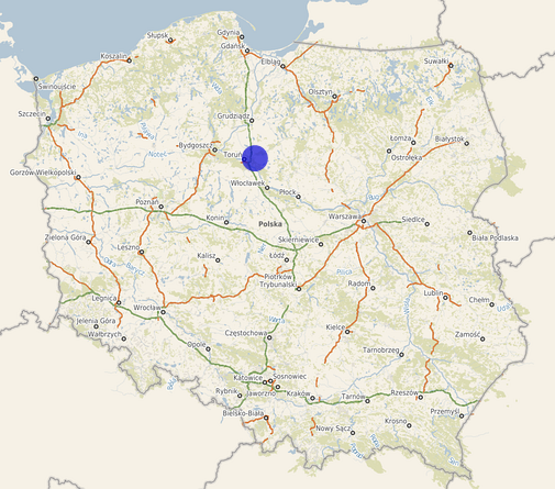 | Współrzędne i wysokość środka | X: 572509, Y: 488294, H: 81 m (PL-1992; PL-EVRF2007-NH) |