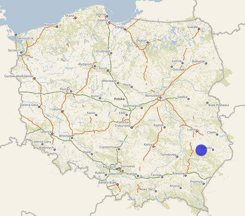 | Współrzędne i wysokość środka | X: 323640, Y: 763517, H: 300 m (PL-1992; PL-EVRF2007-NH) |