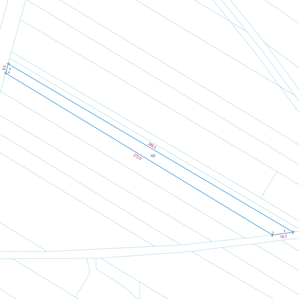 | Lp. | Długość | Szerokość | X (PL-1992) | Y (PL-1992) | Długość boku |