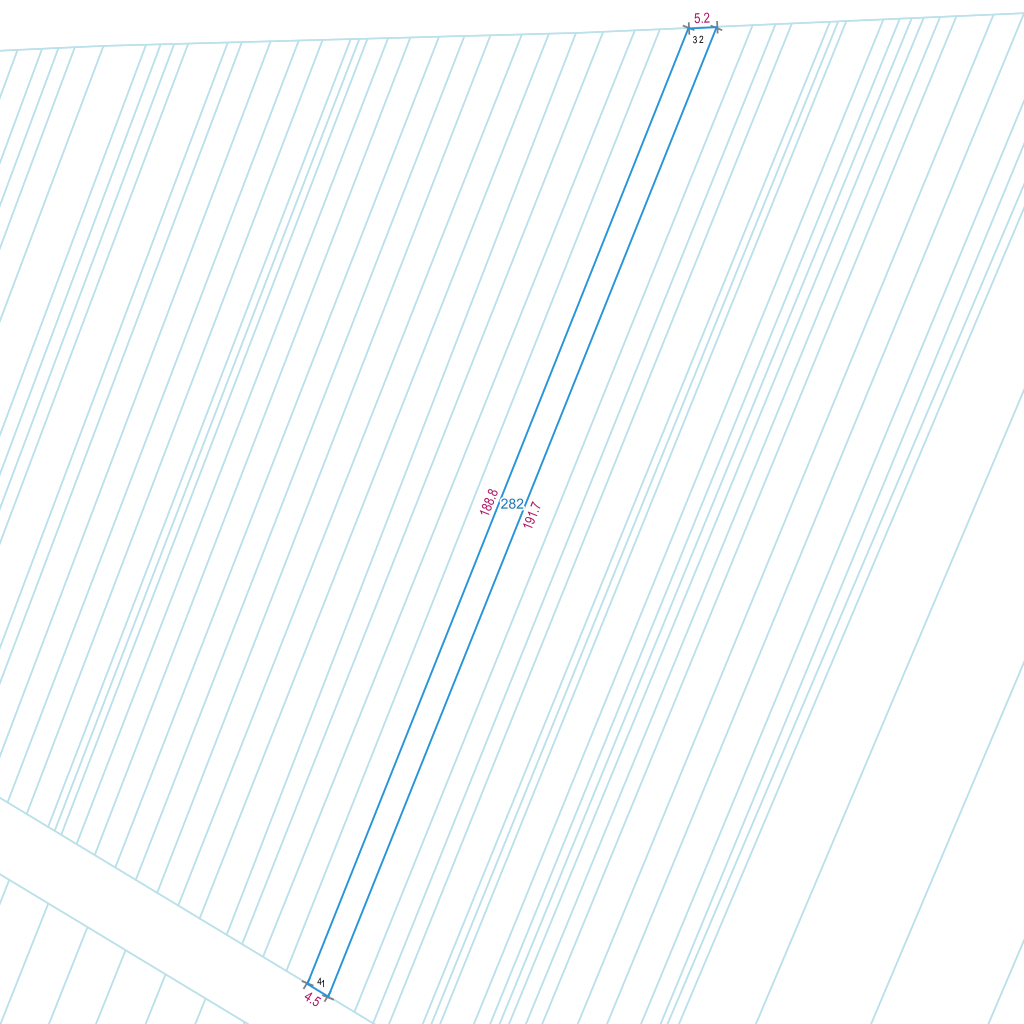| Lp. | Długość | Szerokość | X (PL-1992) | Y (PL-1992) | Długość boku |