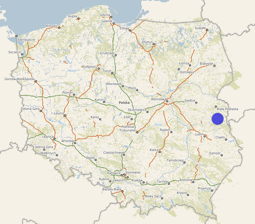 | Współrzędne i wysokość środka | X: 434054, Y: 787842, H: 153 m (PL-1992; PL-EVRF2007-NH) |