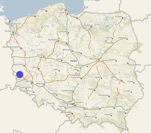 | Współrzędne i wysokość środka | X: 414222, Y: 239028, H: 117 m (PL-1992; PL-EVRF2007-NH) |