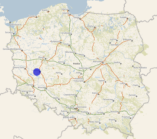 | Współrzędne i wysokość środka | X: 442374, Y: 317960, H: 97 m (PL-1992; PL-EVRF2007-NH) |