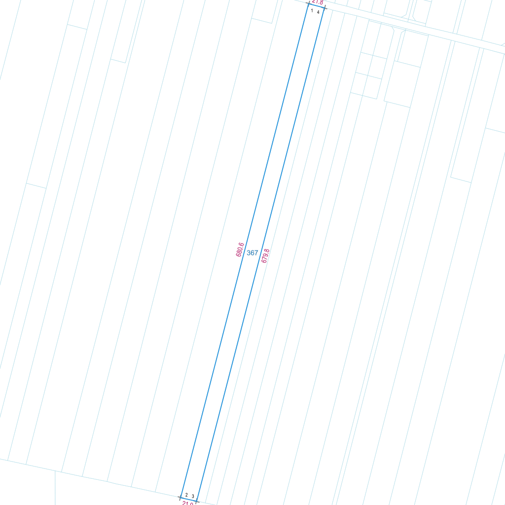 | Lp. | Długość | Szerokość | X (PL-1992) | Y (PL-1992) | Długość boku |
