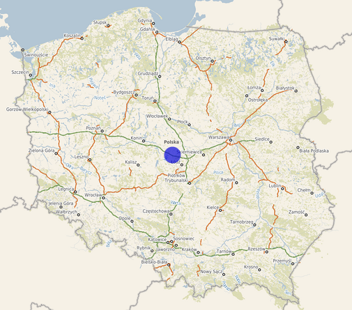 | Współrzędne i wysokość środka | X: 454541, Y: 511647, H: 132 m (PL-1992; PL-EVRF2007-NH) |