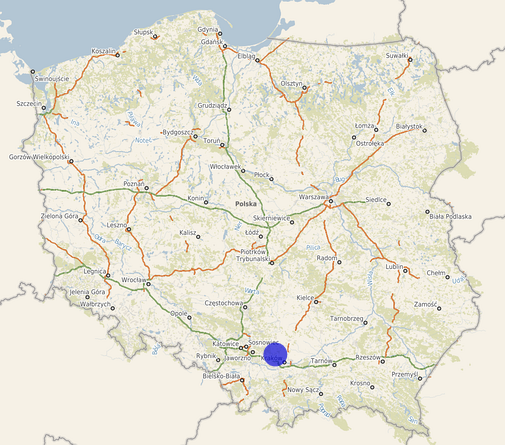 | Współrzędne i wysokość środka | X: 255998, Y: 553689, H: 417 m (PL-1992; PL-EVRF2007-NH) |