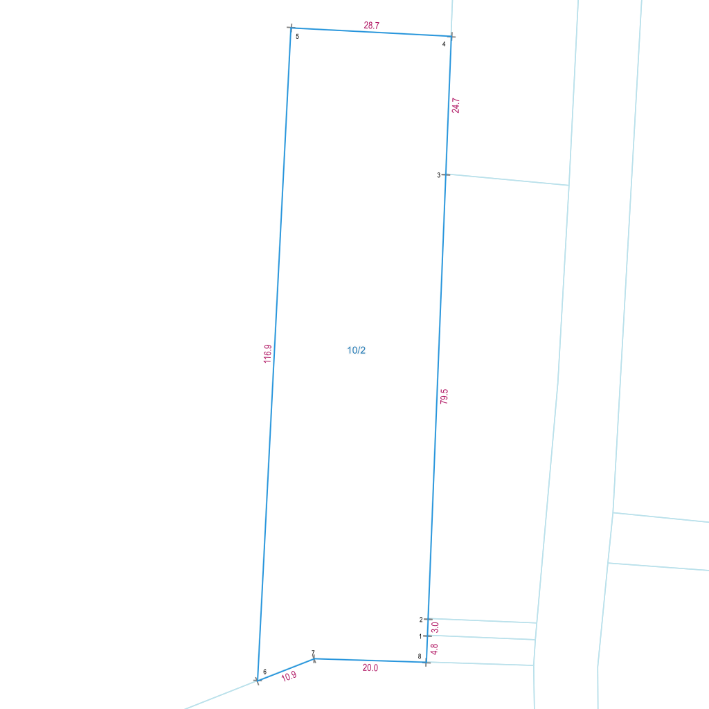| Kształt, wymiary działki i współrzędne punktów granicznych | |