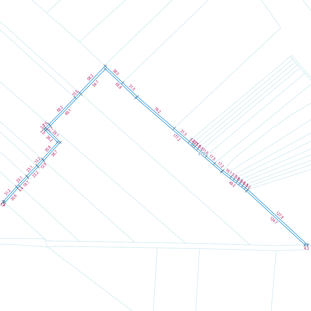 | Lp. | Długość | Szerokość | X (PL-1992) | Y (PL-1992) | Długość boku |