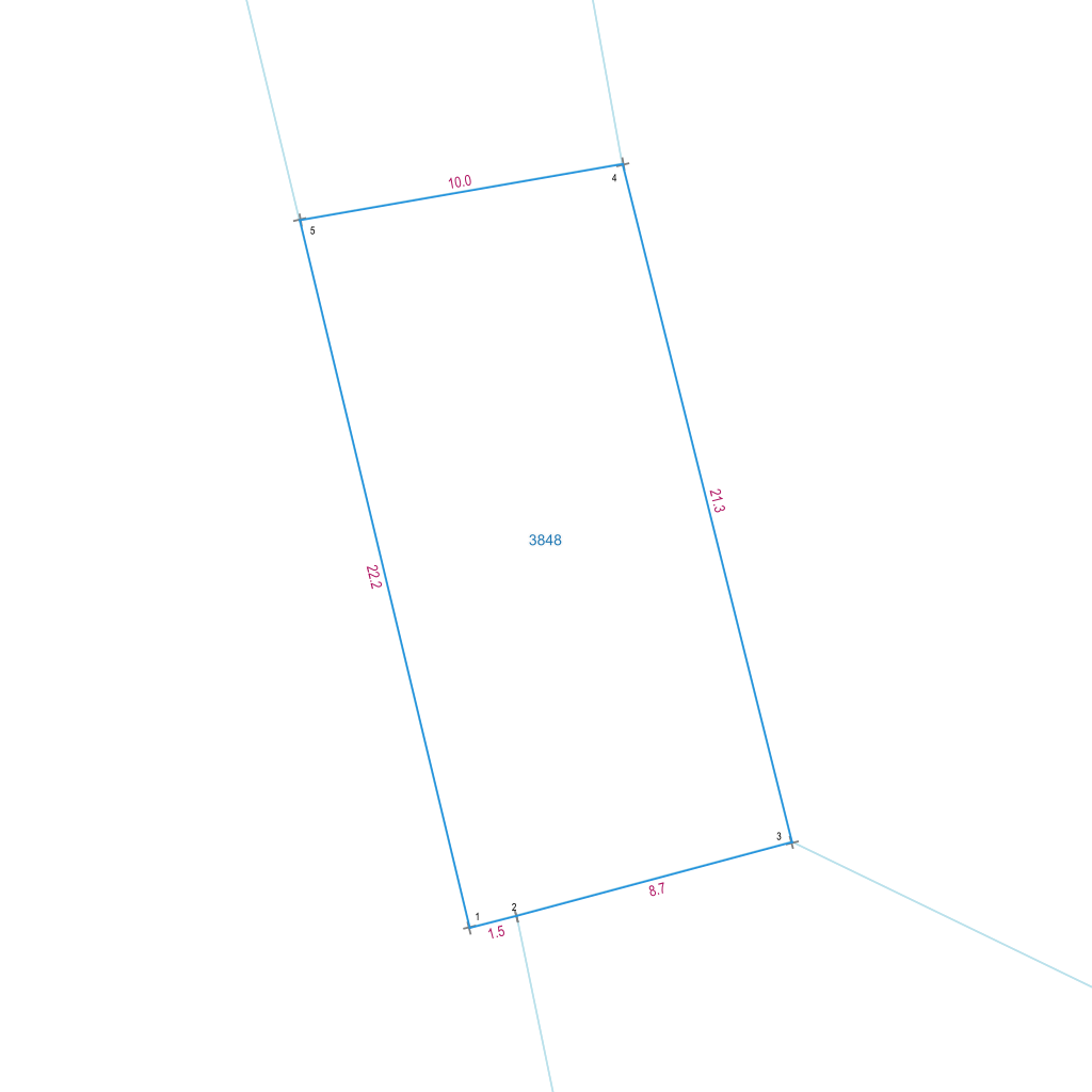 | Lp. | Długość | Szerokość | X (PL-1992) | Y (PL-1992) | Długość boku |