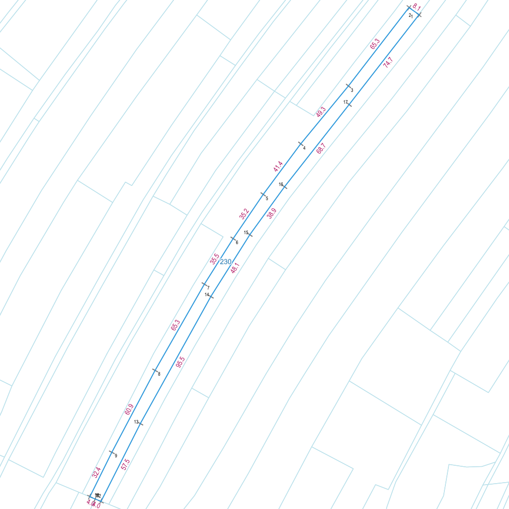 | Lp. | Długość | Szerokość | X (PL-1992) | Y (PL-1992) | Długość boku |