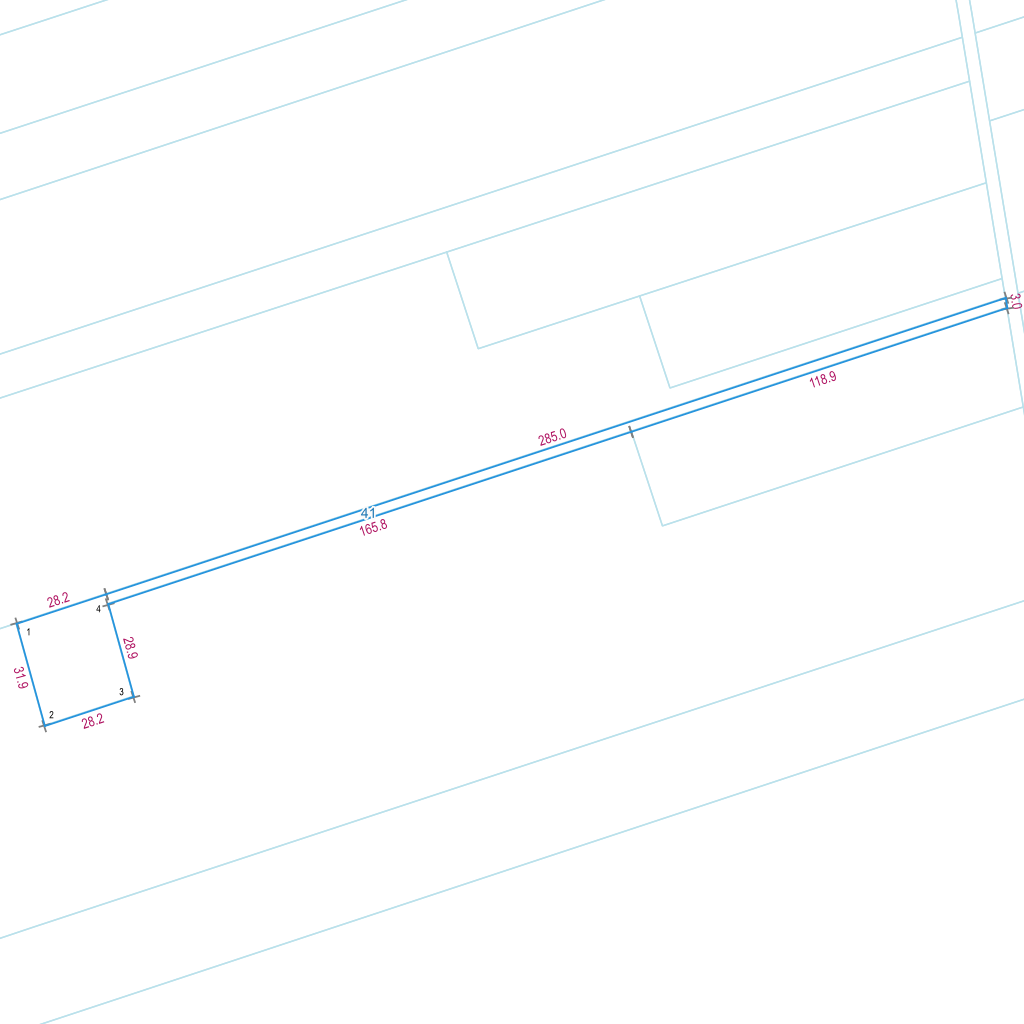 | Lp. | Długość | Szerokość | X (PL-1992) | Y (PL-1992) | Długość boku |