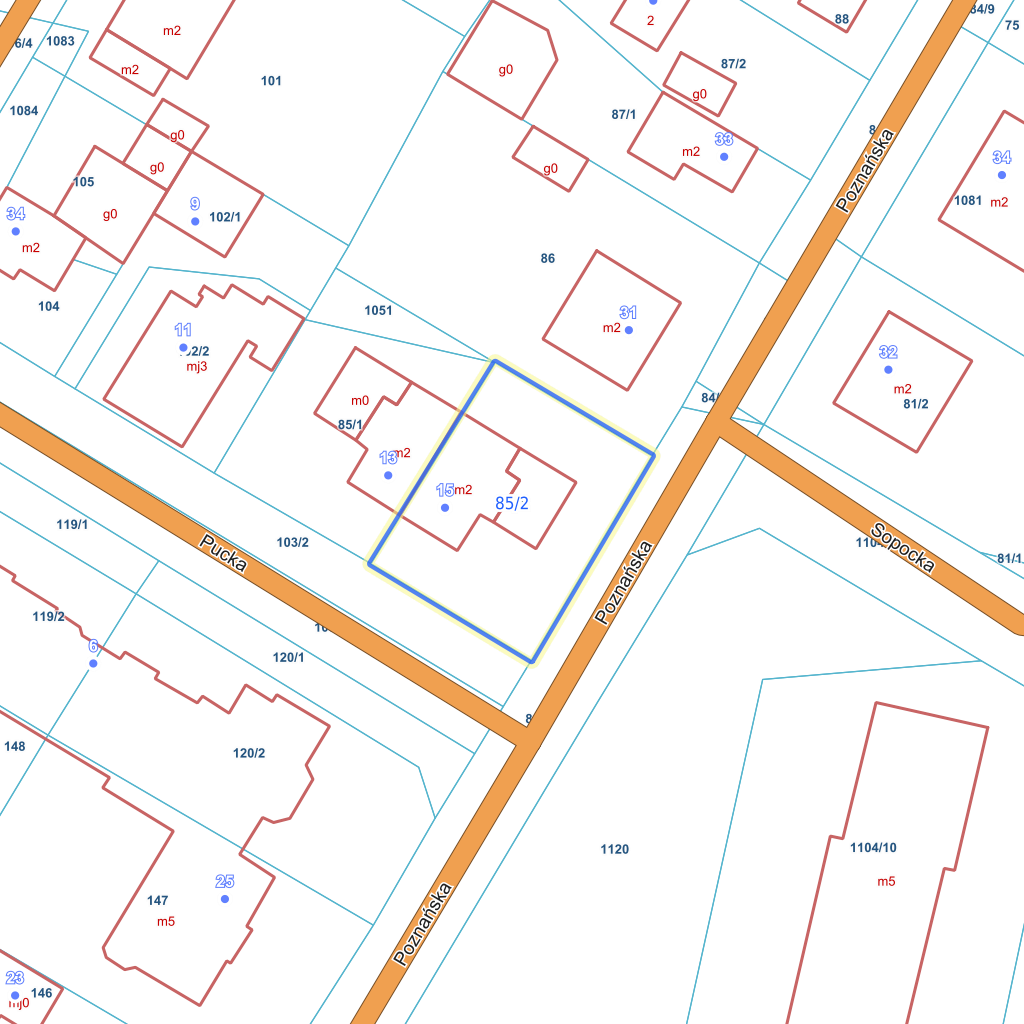 | ID działki | 221502_1.0018.85/2 widok w portalu e-mapa |