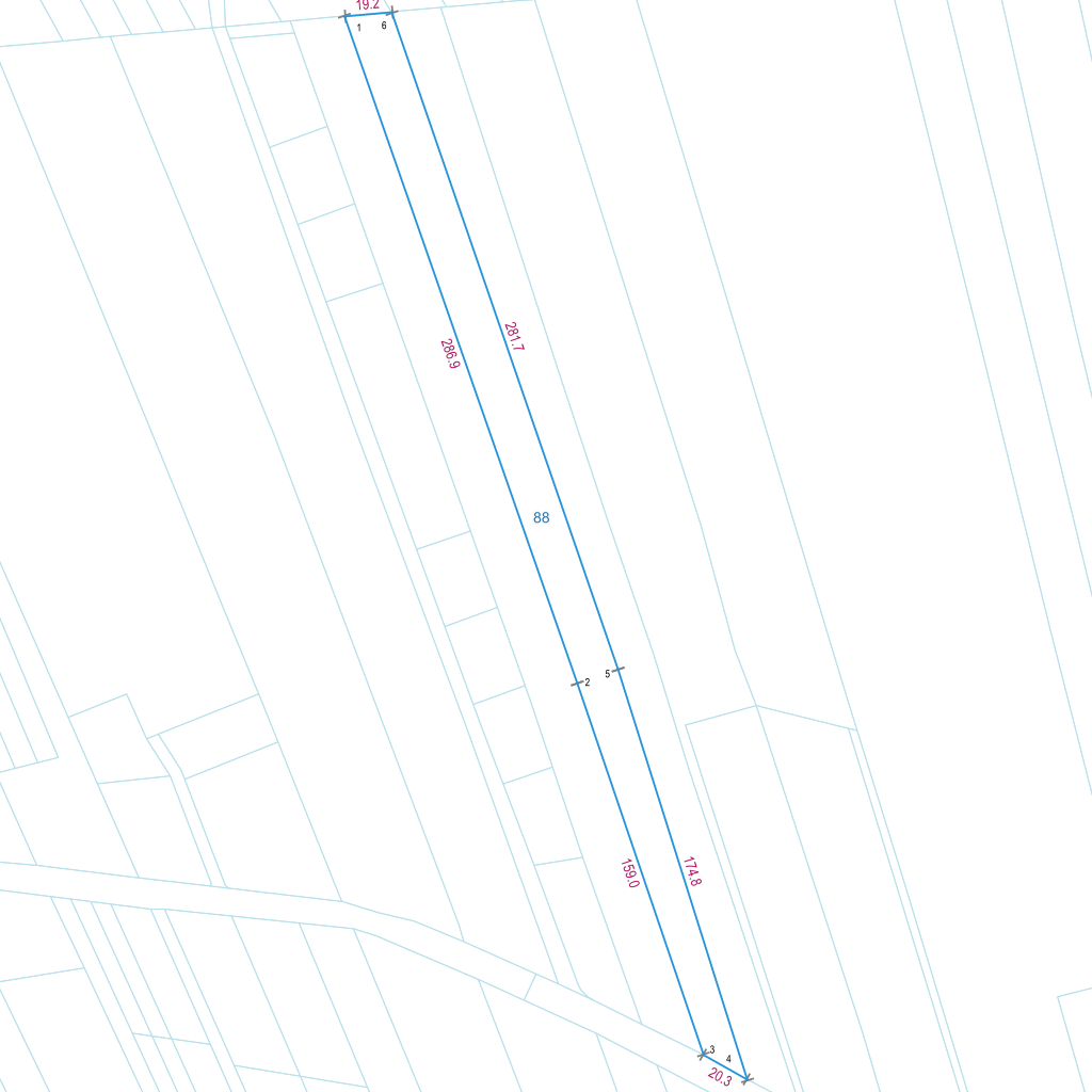 | Lp. | Długość | Szerokość | X (PL-1992) | Y (PL-1992) | Długość boku |