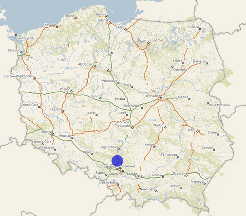 | Współrzędne i wysokość środka | X: 290743, Y: 502054, H: 289 m (PL-1992; PL-EVRF2007-NH) |