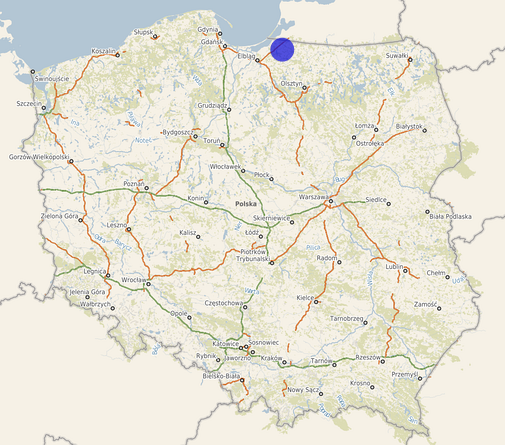 | Współrzędne i wysokość środka | X: 714577, Y: 564142, H: 84 m (PL-1992; PL-EVRF2007-NH) |
