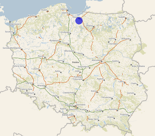 | Współrzędne i wysokość środka | X: 687143, Y: 526604, H: 0 m (PL-1992; PL-EVRF2007-NH) |