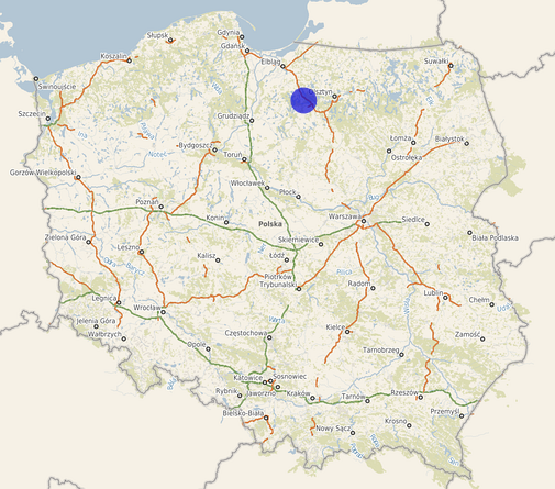 | Współrzędne i wysokość środka | X: 651657, Y: 555223, H: 119 m (PL-1992; PL-EVRF2007-NH) |