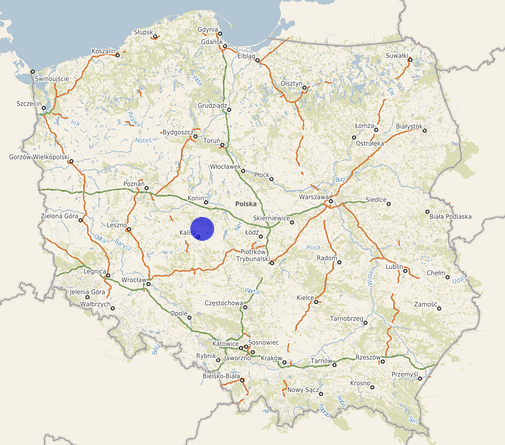 | Współrzędne i wysokość środka | X: 444845, Y: 443677, H: 119 m (PL-1992; PL-EVRF2007-NH) |