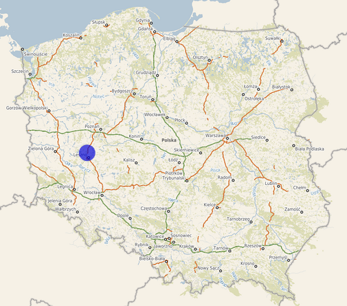 | Współrzędne i wysokość środka | X: 454851, Y: 330158, H: 105 m (PL-1992; PL-EVRF2007-NH) |