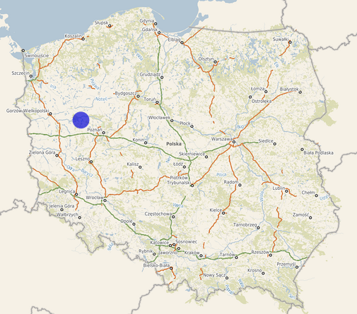 | Współrzędne i wysokość środka | X: 533193, Y: 311676, H: 52 m (PL-1992; PL-EVRF2007-NH) |