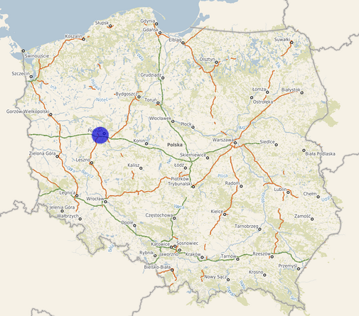 | Współrzędne i wysokość środka | X: 502728, Y: 351581, H: 83 m (PL-1992; PL-EVRF2007-NH) |