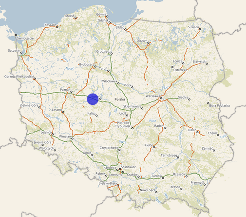 | Współrzędne i wysokość środka | X: 483262, Y: 425801, H: 96 m (PL-1992; PL-EVRF2007-NH) |