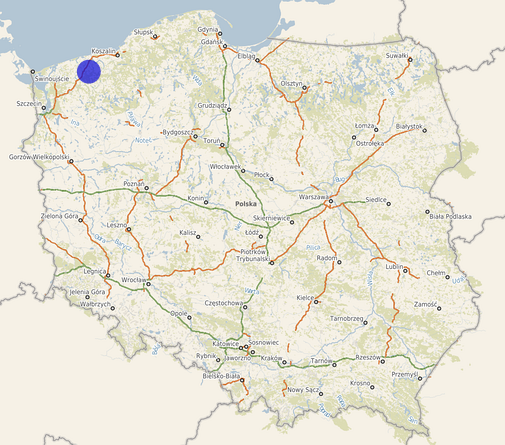| Współrzędne i wysokość środka | X: 681415, Y: 273083, H: 56 m (PL-1992; PL-EVRF2007-NH) |
